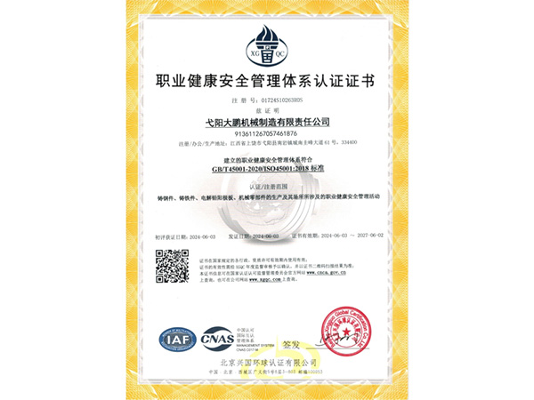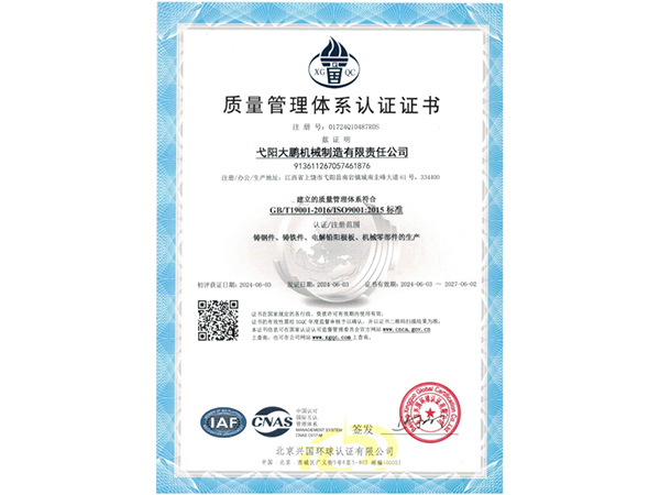 • 09-28弋陽大鵬機械制造有限責任公司成功取得規范